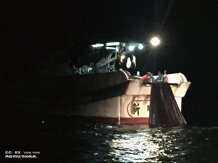 原來今次行程除左體驗夜釣之外,仲有安排現場睇漁船圍捕丁香魚同小管架!第1次睇漁船點樣捕魚,又令我大開眼界喇!船隻向示範捕魚嘅漁船買左漁獲後,就即刻拎返去島上準備宵夜喇!