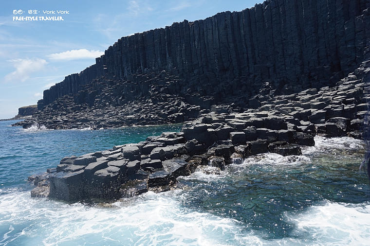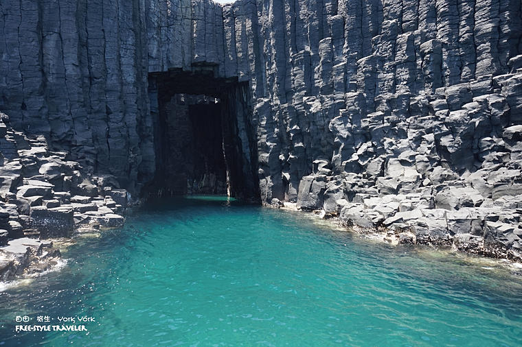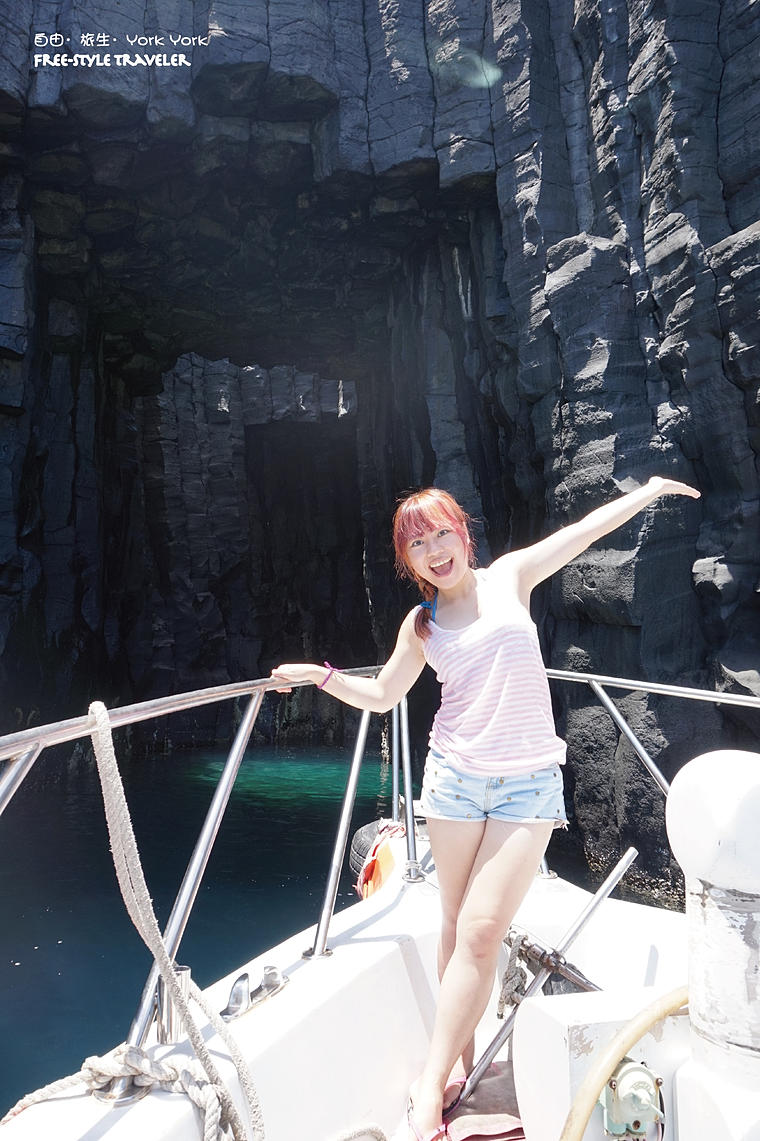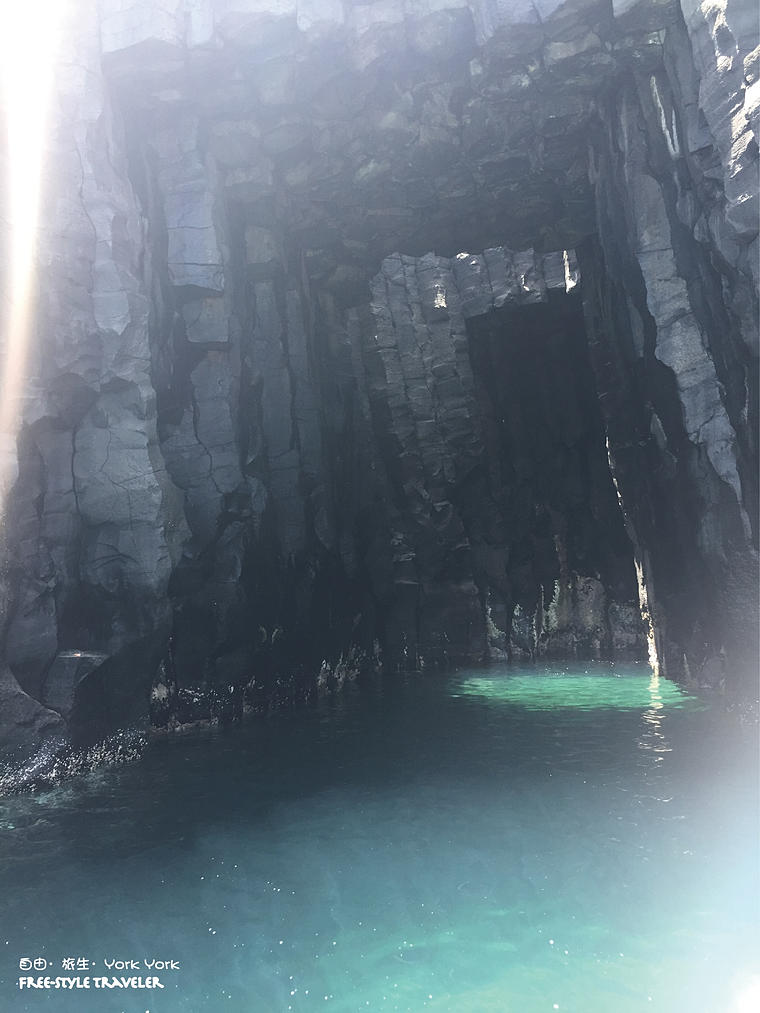 海蝕洞因為嚴重侵蝕,下方玄武岩斷裂崩落後,形成一半開放孔洞,陽光照射到洞內海水藍如寶石,所以又稱為「藍洞」,又靚又神秘呢!
