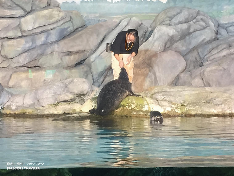 世界水域嘅海豹餵食,餵飼員一個手勢就可以令到海豹上岸 ,睇黎佢同2隻海豹都好有默契呢!