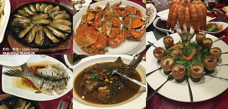 這次的大菜主要以海鮮為主,有紅燒全魚、青蒸全魚、蟹、蝦、海瓜子(小貝殻)、蟶子