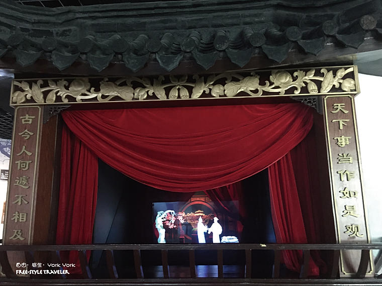 這個小型的戲台正在上演著梁祝故事,只要把頭伸入去,就能感受到那種真實呢!