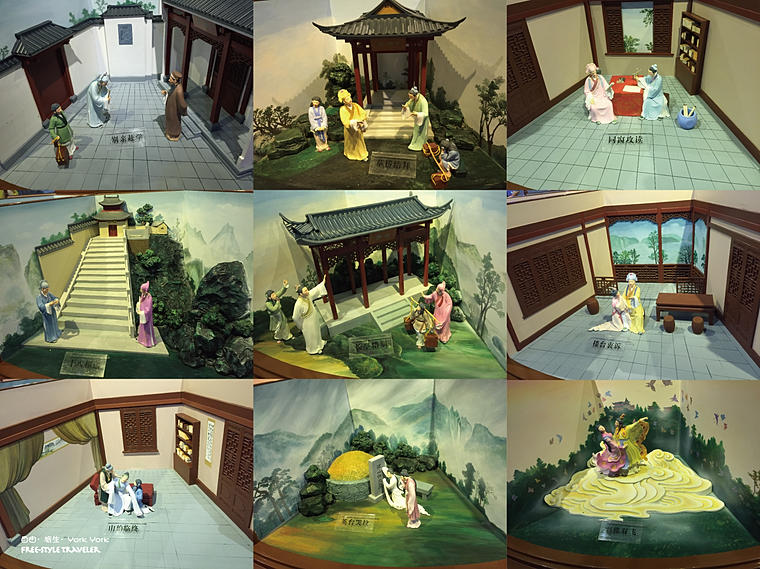 這裡也有一些模型活靈活現地展示了梁祝故事中的《別親赴學》、《草橋結拜》、《同窗攻讀》、《十八相送》、《長亭惜別》、《樓台衷訴》、《山伯臨終》、《英台哭墳》、《彩蝶雙飛》呢!