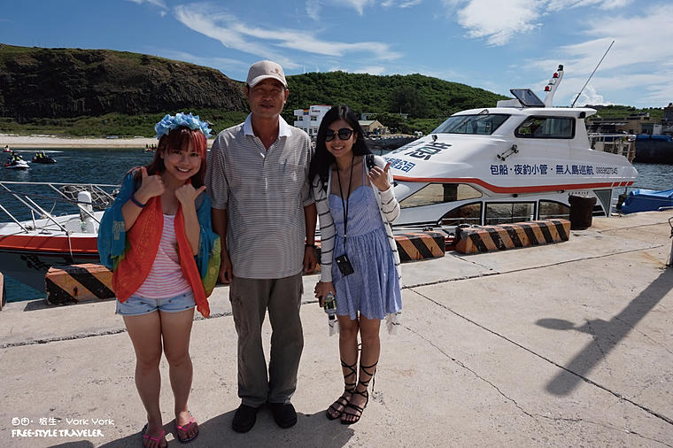 我地到達左南方小島第1站-東吉嶼喇,當然要同船長合照啦!