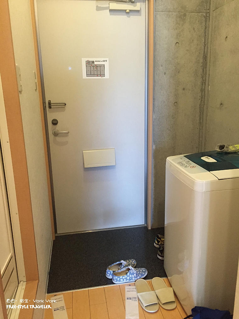 一打開門,竟然有洗衣機,就好像小家庭一樣呢!