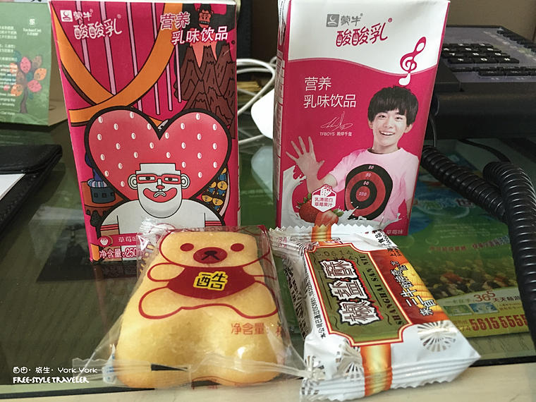 在床頭桌上,有酒店免費供應的小食。一看到包裝就好想笑,但吃下去也不錯呢!
