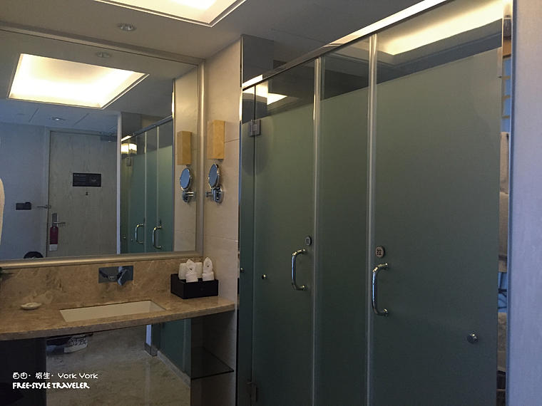 上到去房間,一打開門,就是半開放的浴室間。廁所和淋浴都在門後,洗手盆化妝位開放式,而且旁邊有很多面直身鏡,打扮的時候很方便呢!